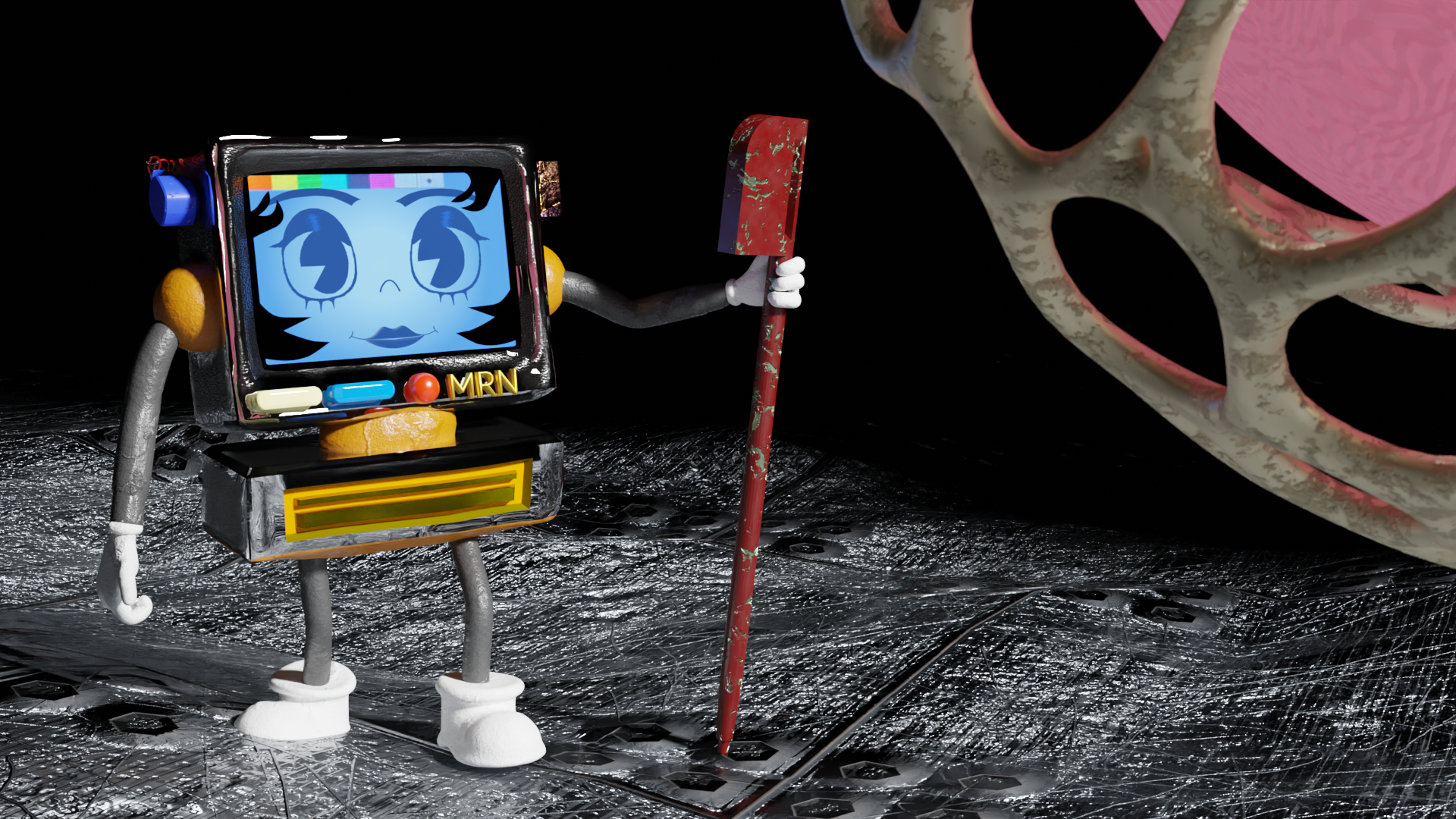 The character design is heavily focused using material shaders, and I aimed to use materials and procedural graphics as much as possible to highlight the environment they inhabit.